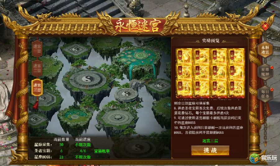 入口:主界面-九霄天外-永恒迷宫,开服165天开启。